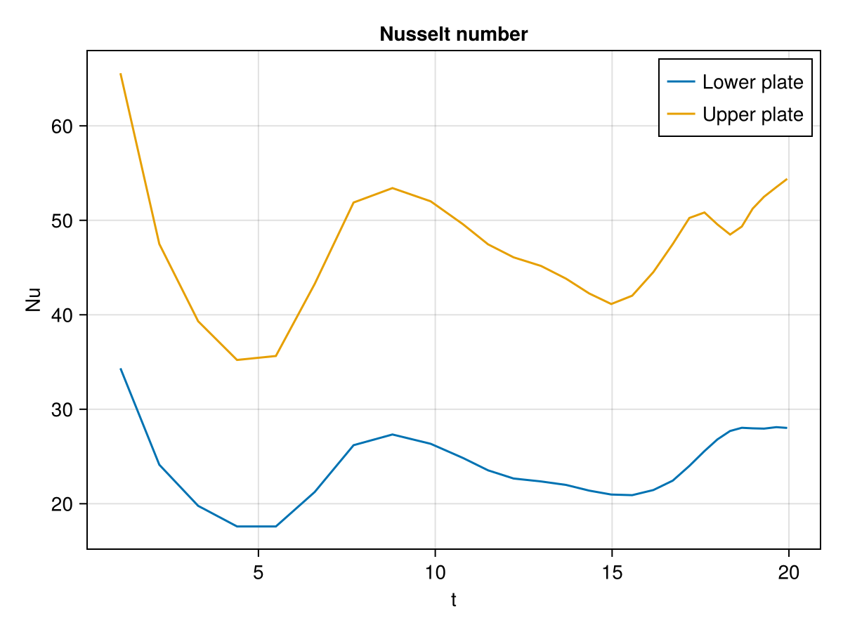 );[ Info: Finished after 564 time steps and 8.7 secondsNusselt numbers